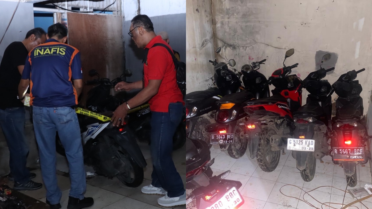 Saat polisi menggerebek tempat tersebut, mereka menemukan 13 unit sepeda motor tanpa surat resmi, yang diduga kuat berasal dari hasil kejahatan.
