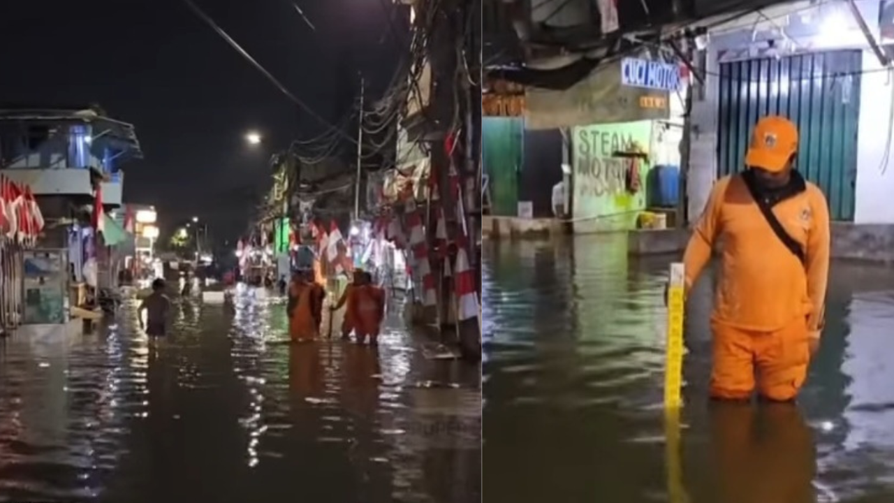 Banjir rob kembali merendam kawasan Penjaringan, Jakarta Utara, hanya sehari setelah perayaan HUT RI ke-80. --Youtube-tvOneNews